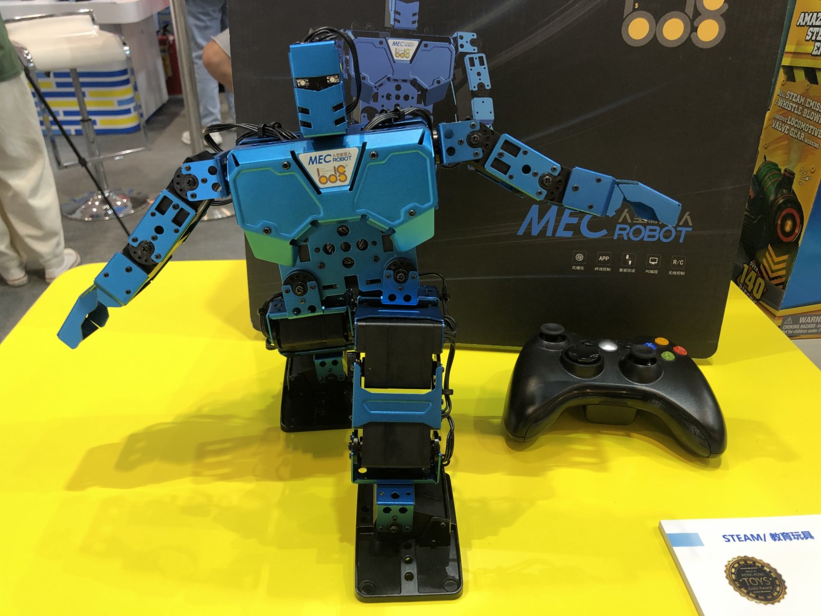 由BDS研發的MEC人型機械人在2021年3月31日的「第33屆國際玩具及教育產品(深圳)展」中奪得【教育玩具金獎】!!全身藍色的MEC人型機械人採用人體仿生外觀設計,外殼選用高強度鋁合金設計,設計創新,具備唱歌、跳舞及各種仿人型動作功能,可通過PC或手機APP進行動作程序設計及控制機械人完成各類動作等。