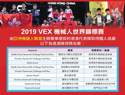 VEX IQ 是其中參與【機械人集體編程】健力士世界紀錄的機械人,活動旨在激發年輕人對機械人科學及科技應用的興趣,掌握計算思維及編程技巧,促進本地創科人才發展。